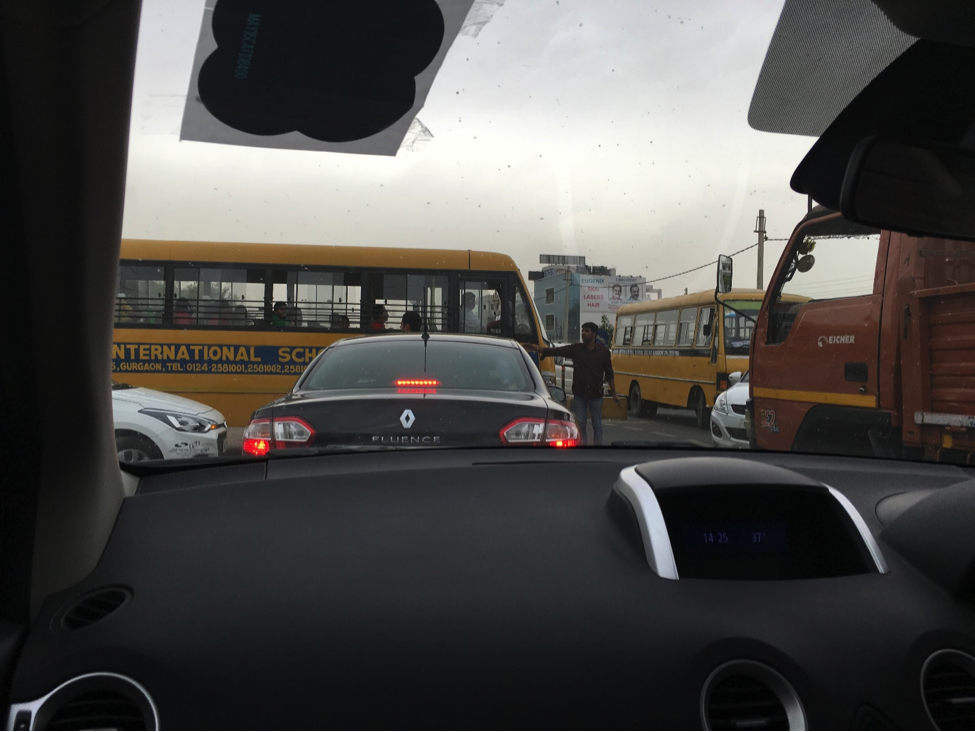 Student transport presents huge safety challenges in India. Millions of students are served by either government or privately operated school buses. However, parents often opt for private transport in unsafe minivans with little if any training and no background checks for drivers. The potential for mass casualty accidents is significant due to the heavy traffic in urban centers. Here a private citizen is attempting to clear a traffic jam which was blocking the route for dozens of school buses and hundreds of motorists.